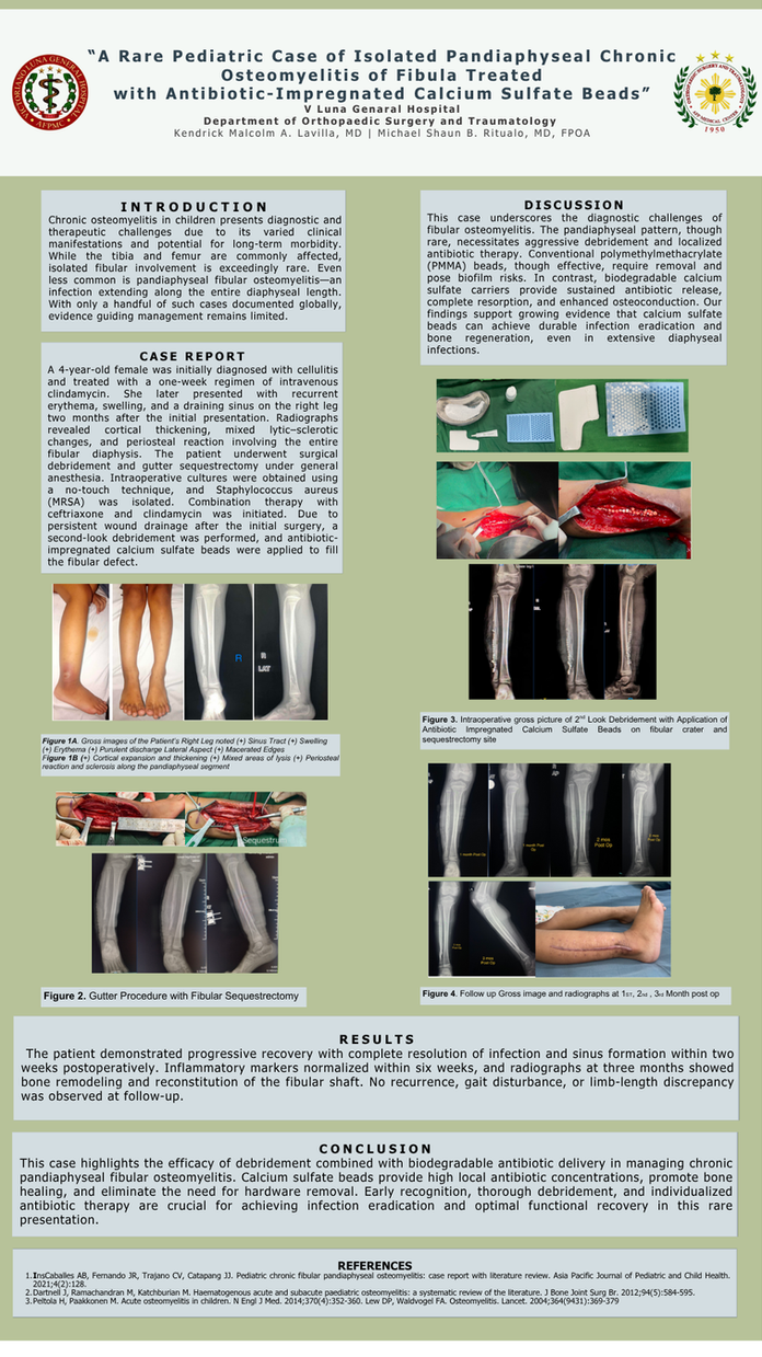 4 A Rare Pediatric Case of Isolated Pandiaph-yseal Chronic Osteomyelitis of Fibula Treated with Antibiotic - Impregnated Calcium Sulfate Beads - Dr. Kendrick Malcolm A. Lavilla